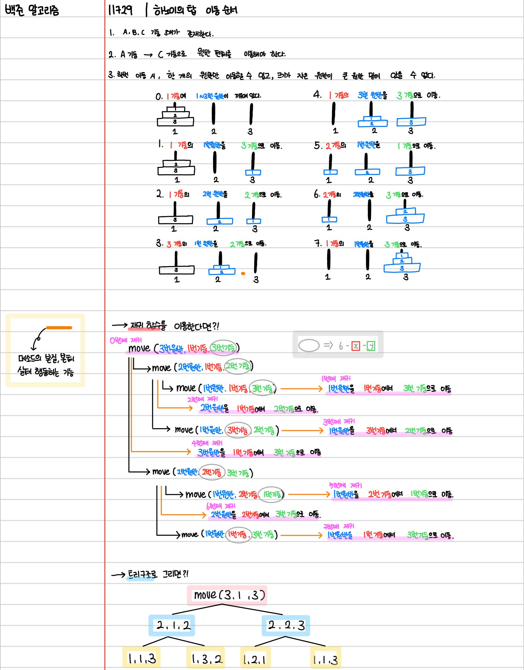 ๊ทธ๋ ๋ค๋ฉด ํ์ฌ 1๋ฒ ๊ธฐ๋ฅ์ ์๋ 3๋ฒ ์๋ฐ์ 3๋ฒ ๊ธฐ๋ฅ์ผ๋ก ์ด๋ํ๊ธฐ ์ํด์๋ 1๋ฒ ๊ธฐ๋ฅ์ ์๋ 2๋ฒ ์๋ฐ์ 2๋ฒ ๊ธฐ๋ฅ์ผ๋ก ์ฎ๊ธฐ๊ณ , 2๋ฒ ์๋ฐ์ ์ฎ๊ธฐ๊ธฐ ์ํด์๋ 1๋ฒ ๊ธฐ๋ฅ์ ์๋ 1๋ฒ ์๋ฐ์ 3๋ฒ ๊ธฐ๋ฅ์ผ๋ก ์ด๋ํ๋ค.