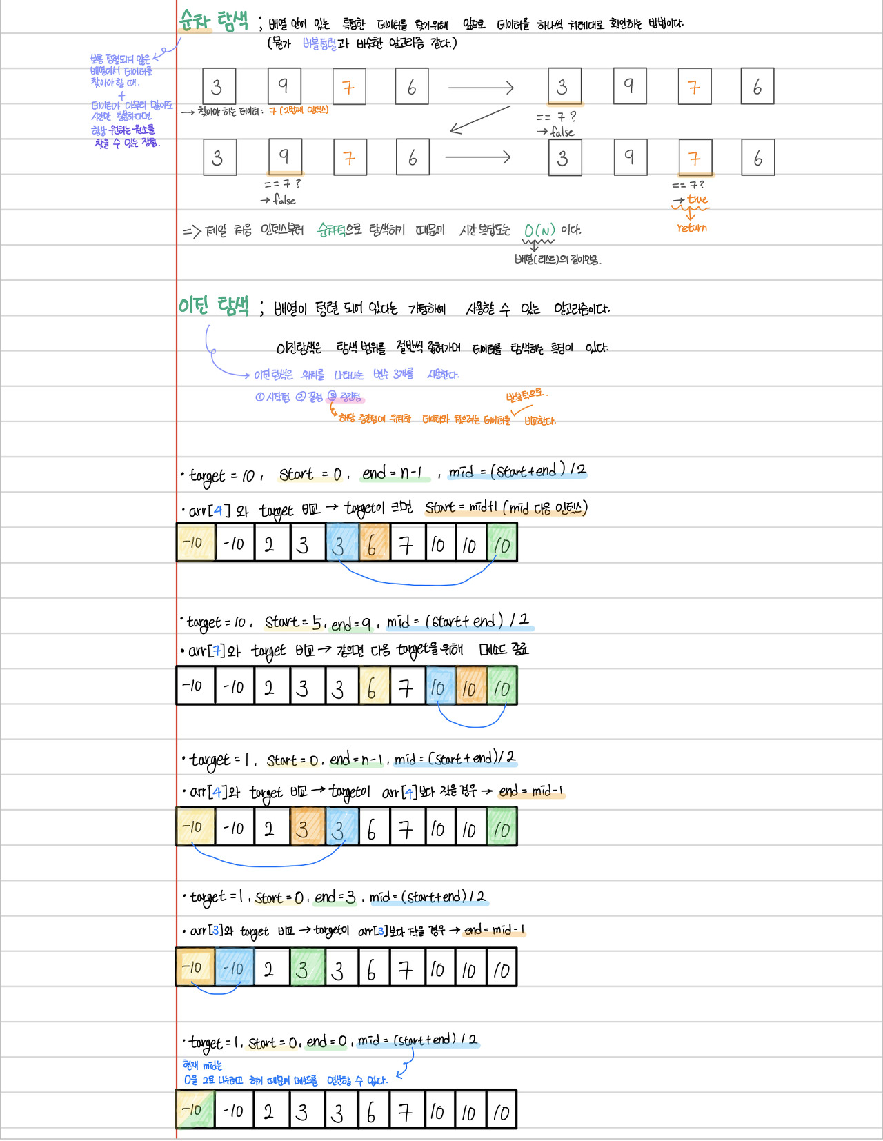 - ๋ฐฐ์ด์ด ์ ๋ ฌ๋์ด ์๋ค๋ ์ ์ ํ์ ์ฌ์ฉํ ์ ์๋ ์๊ณ ๋ฆฌ์ฆ์ด๋ค.