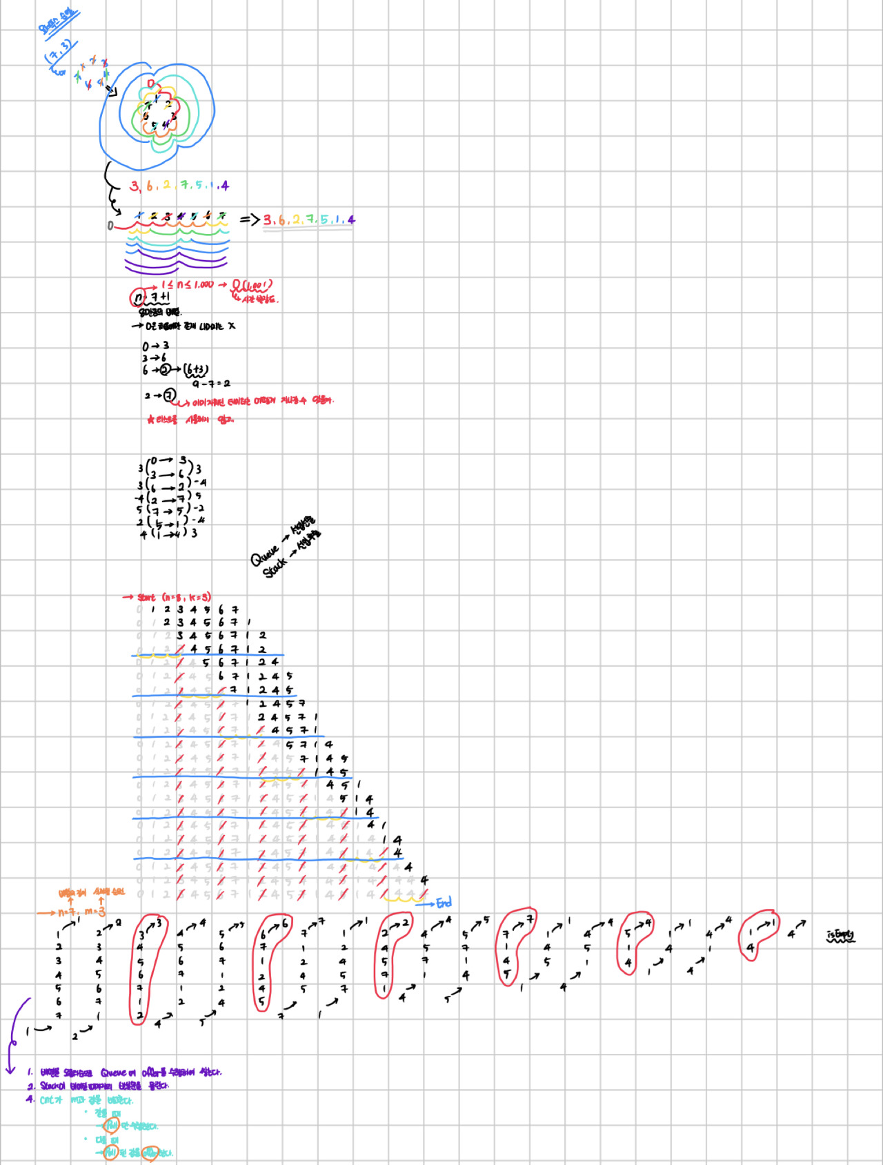 ์์ ๊ทธ๋ฆผ๊ณผ ๊ฐ์ด 0 ๋ฒ์งธ ์ธ๋ฑ์ค๋ฅผ ์ ์ธํ๊ณ , cnt ๋ณ์๋ฅผ ํ์ฉํด cnt ๋ณ์์ ๊ฐ์ ์ฆ๊ฐ ์์ผ ํด๋น ๋ณ์๊ฐ์ด M ๋ฒ์งธ๋ผ๋ฉด queue ๋ณ์์ ๊ฐ์ฅ ์์ ์๋ ๋ฐ์ดํฐ๋ฅผ poll()ํ๊ณ , ๋ค์ ํด๋น ๋ฐ์ดํฐ๋ฅผ offer()ํ๋ ํ์์ผ๋ก ๊ตฌํํ์๋ค.