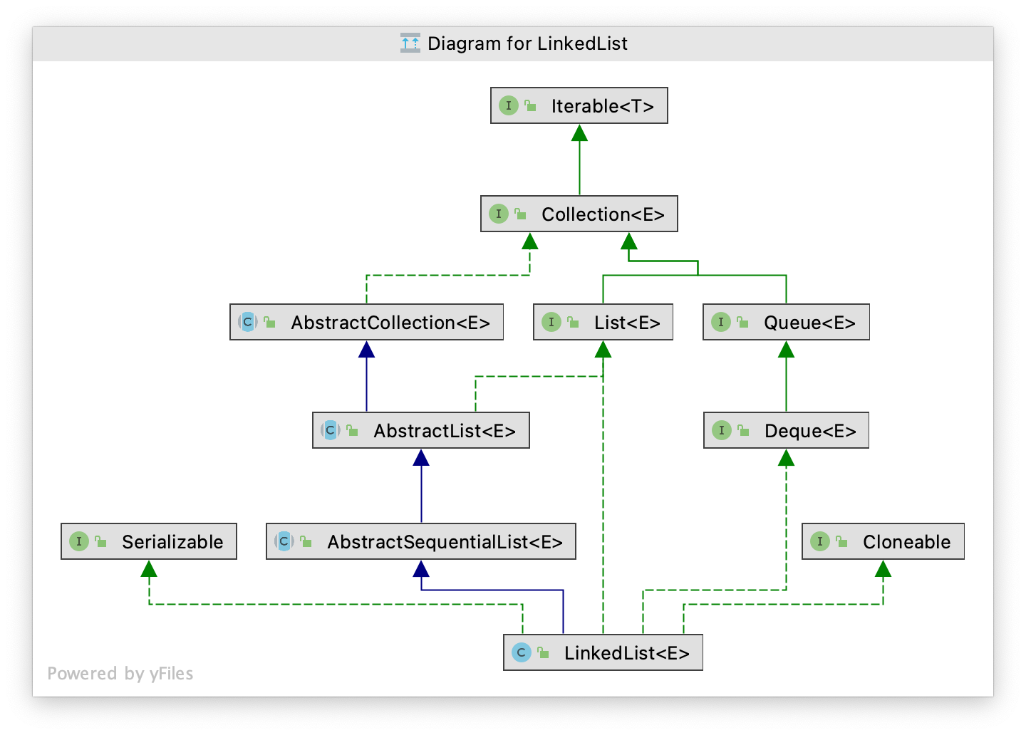 LinkedList ํด๋์ค๋ ArrayList ํด๋์ค์ ๋ฌ๋ฆฌ AbstractList ์ถ์ ํด๋์ค๋ฅผ ์ง์ ์ ์ผ๋ก ์์ ๋ฐ๋ ๊ฒ์ด ์๋๋ผ AbstractSequesntialList ์ถ์ ํด๋์ค๋ฅผ ์์ ๋ฐ์ ํ์ฅํ๋ค.