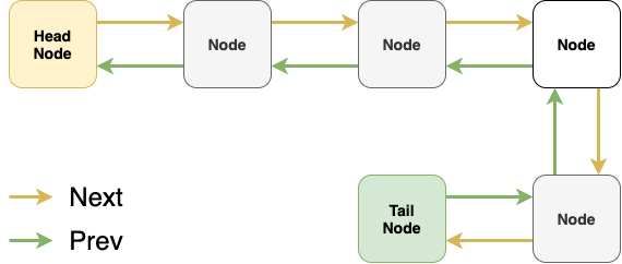 ์ด๋ฐ ์ด์ ์ด ์๋ LinkedList์ด์ง๋ง ํด๋น ํ์๋ฅผ ์ํํ ๋ O(n)์ ์๊ฐ ๋ณต์ก๋๋ฅผ ๊ฐ์ง๋ ๊ฒฝ์ฐ๊ฐ ๋ฐ์ํ๋๋ฐ, ์ด๋ ์ฒซ ๋ฒ์งธ ํน์ ๋ง์ง๋ง ๋ ธ๋๋ฅผ ์ ์ธํ ์ค๊ฐ ๋ ธ๋์ ๋ํ ํด๋น ํ์๋ฅผ ์ํ ํ ๋ ๋ฐ์ํ๋ค.